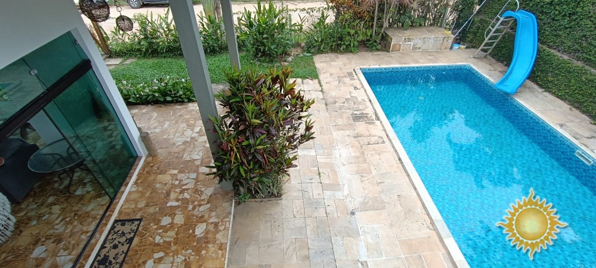 Linda casa com pé direito alto, com 5 dorms, sendo 04 suítes, 01 banheiro social, cozinha integrada, lavanderia, sala ampla com pé direito alto para 02 ambientes : jantar e estar, espaço externo incrível com piscina e jardim perfeito para momentos ao ar livre, área de serviço, o imóvel esta sendo vendido mobiliado, sai pertences pessoais e alguma coisa de decoração.