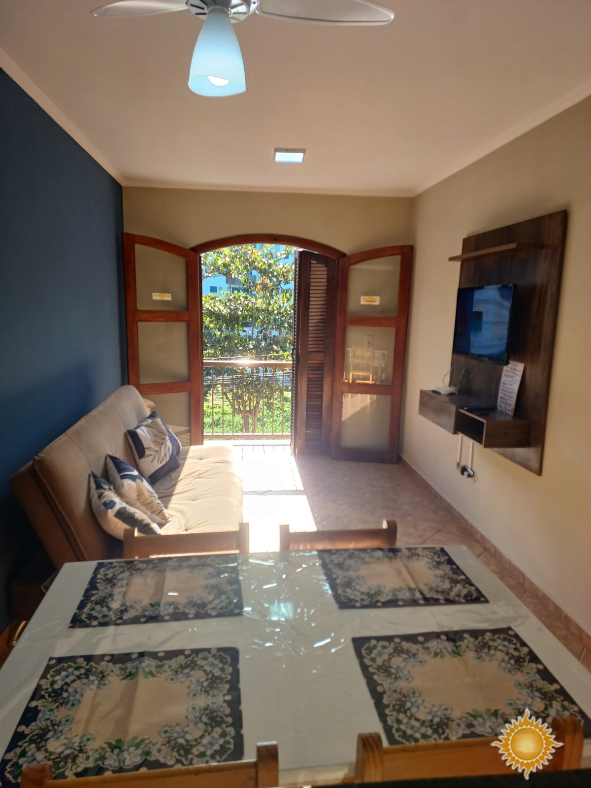 Possui 1 dormitório, 1 banheiro, sala de jantar, sala de estar com varanda, cozinh