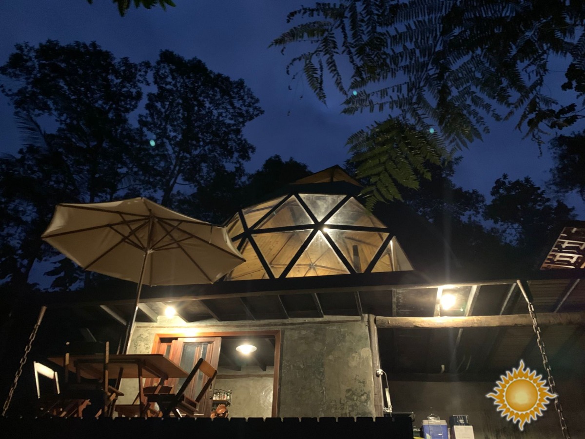 Domo gepdésico com sauna úmida relaxante, dois andares sendo o superior